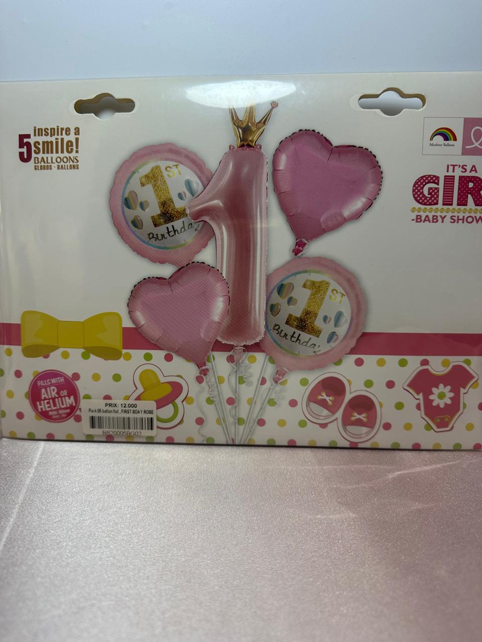 Ballon Foil FIRST BDAY ROSE