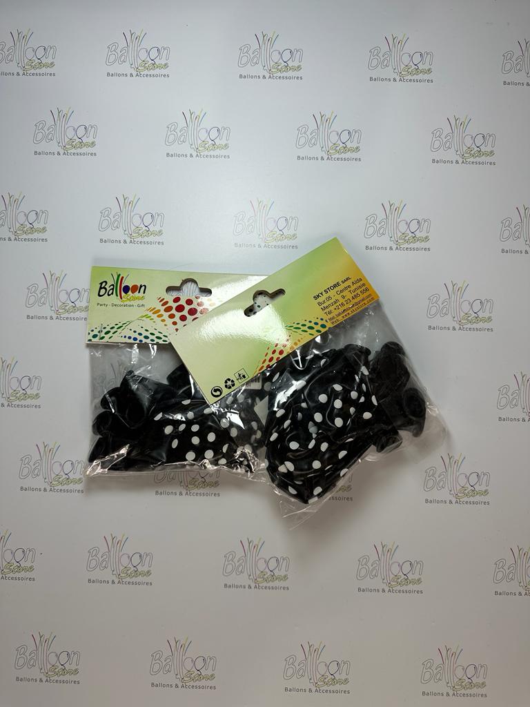 Sachet 10 ballons Noir Pois blanc